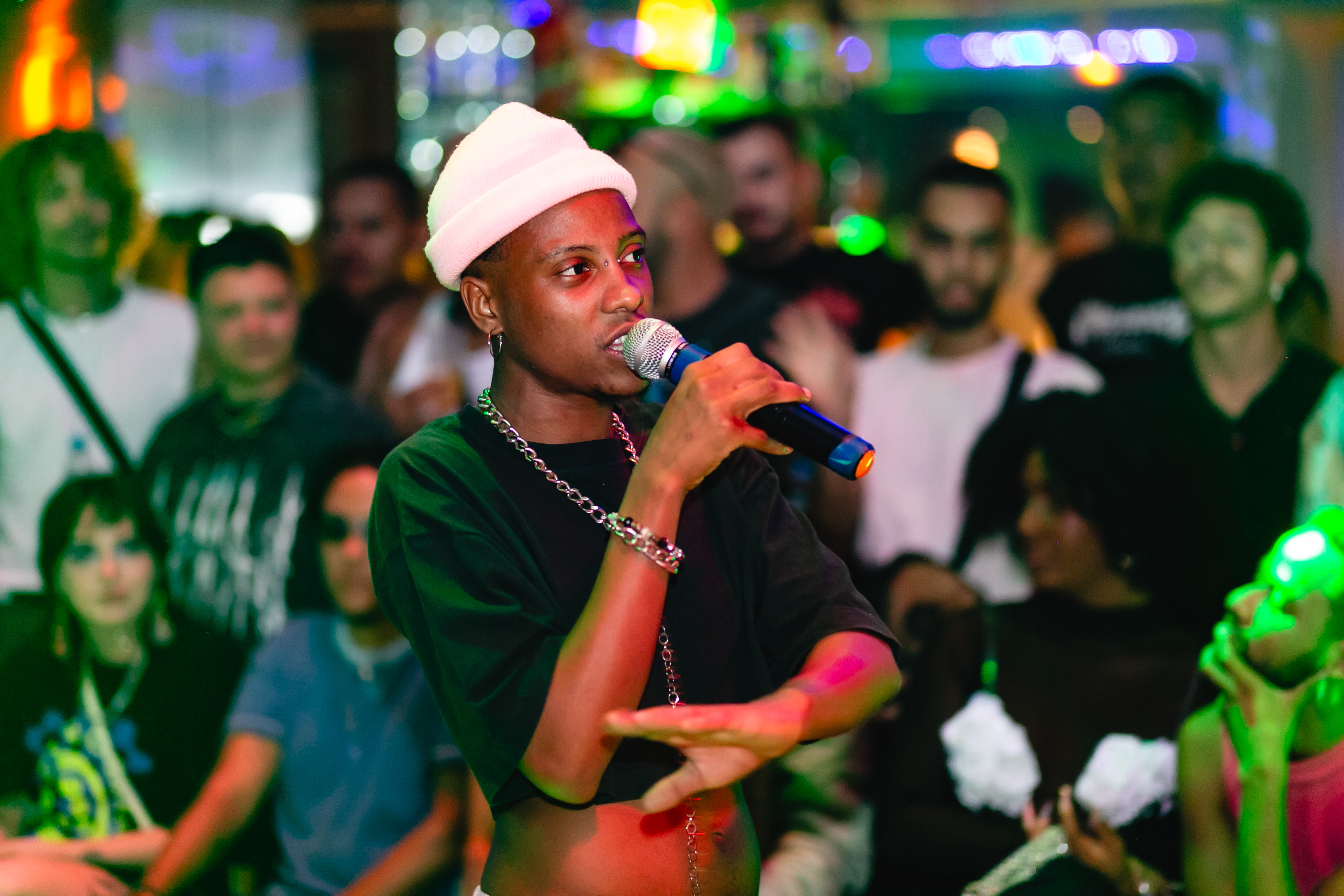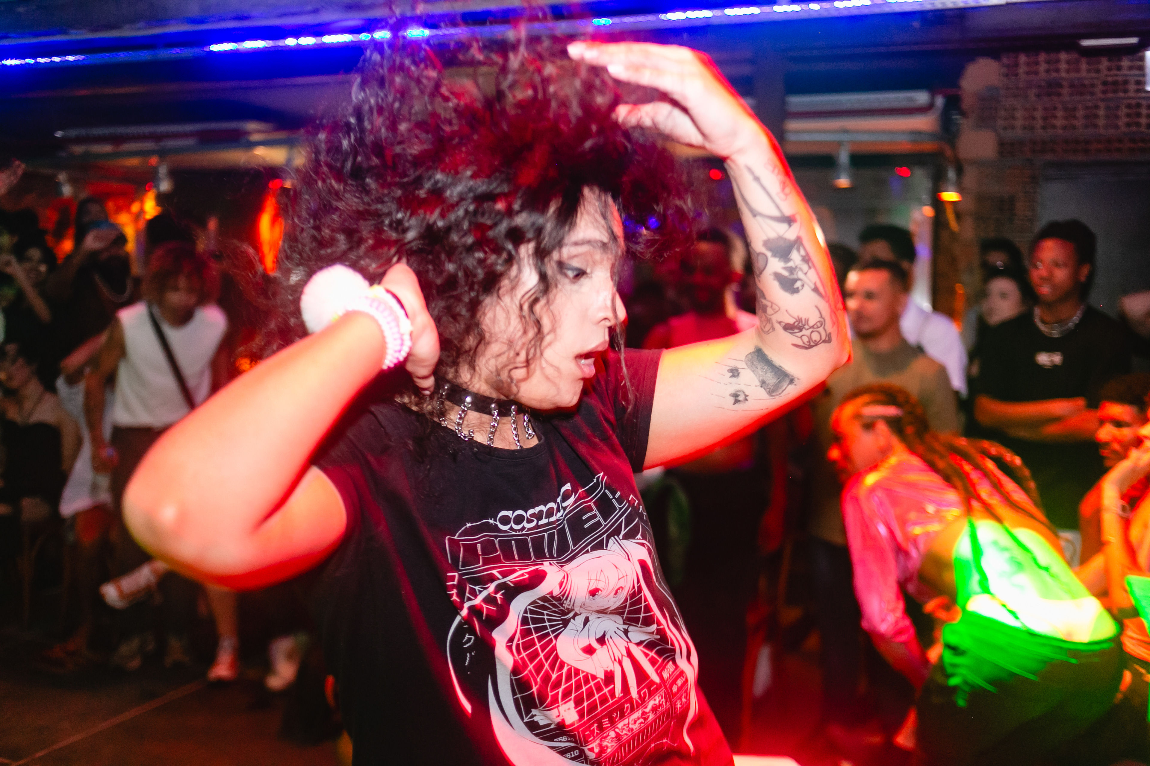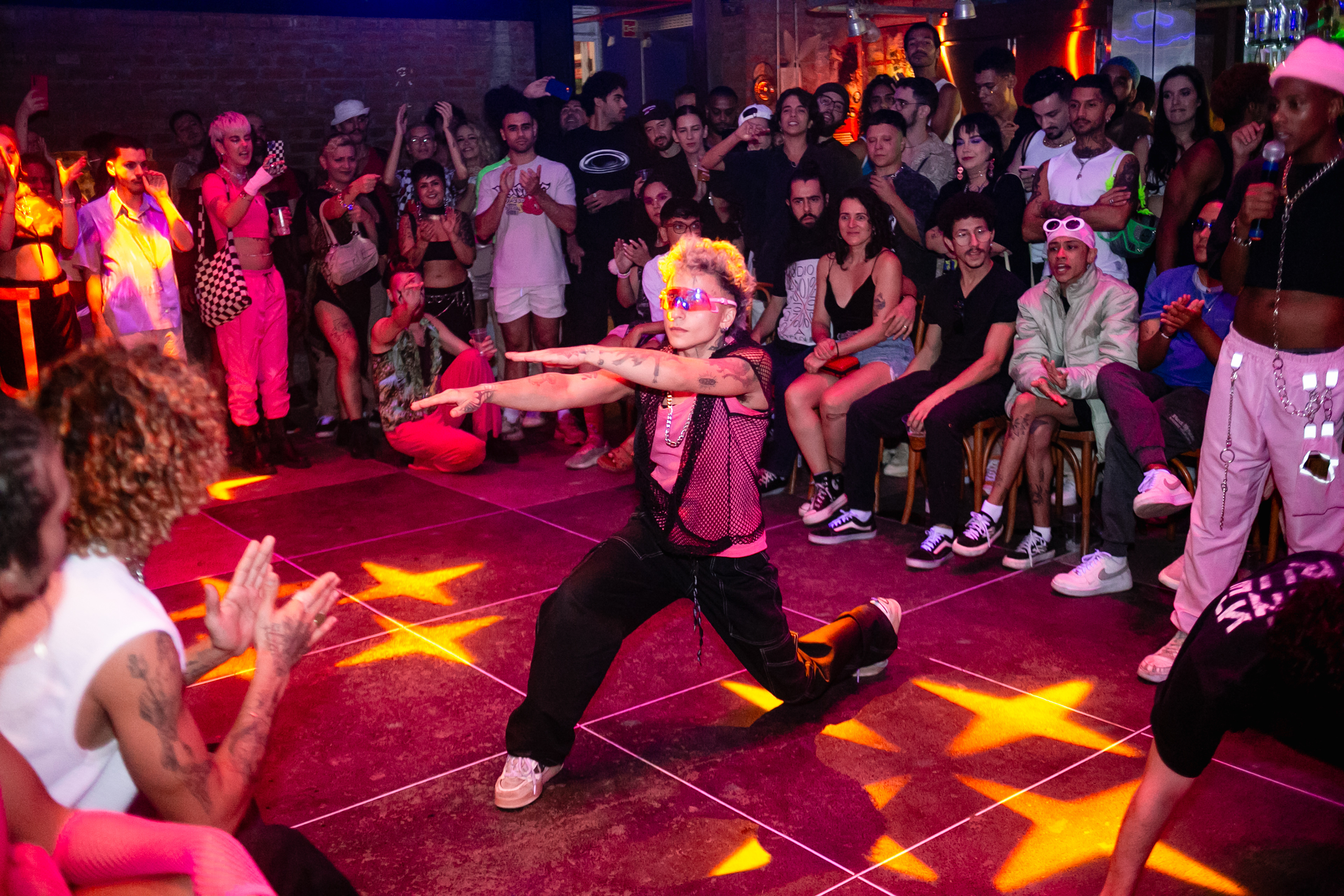 Os momentos de busca de diversão, pertencimento e expressão que só acontecem em alguns lugares durante a noite. Fotos de festas, festivais, shows e similares.